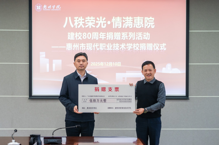 此次捐赠仪式,不仅为惠州学院建校80周年注入了真挚的温暖与力量,也为两校进一步深化合作奠定了坚实基础。双方表示,今后将在实践教学基地共建、思政课程协同、人才共育等方面加强联动,实现优势互补、携手共赢,共同谱写教育高质量发展的崭新篇章。