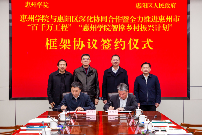 2024年3月1日 我校与惠阳区深化协同合作暨全力推进惠州市“百县千镇万村高质量发展工程”“惠州学院智撑乡村振兴计划”框架协议书签约